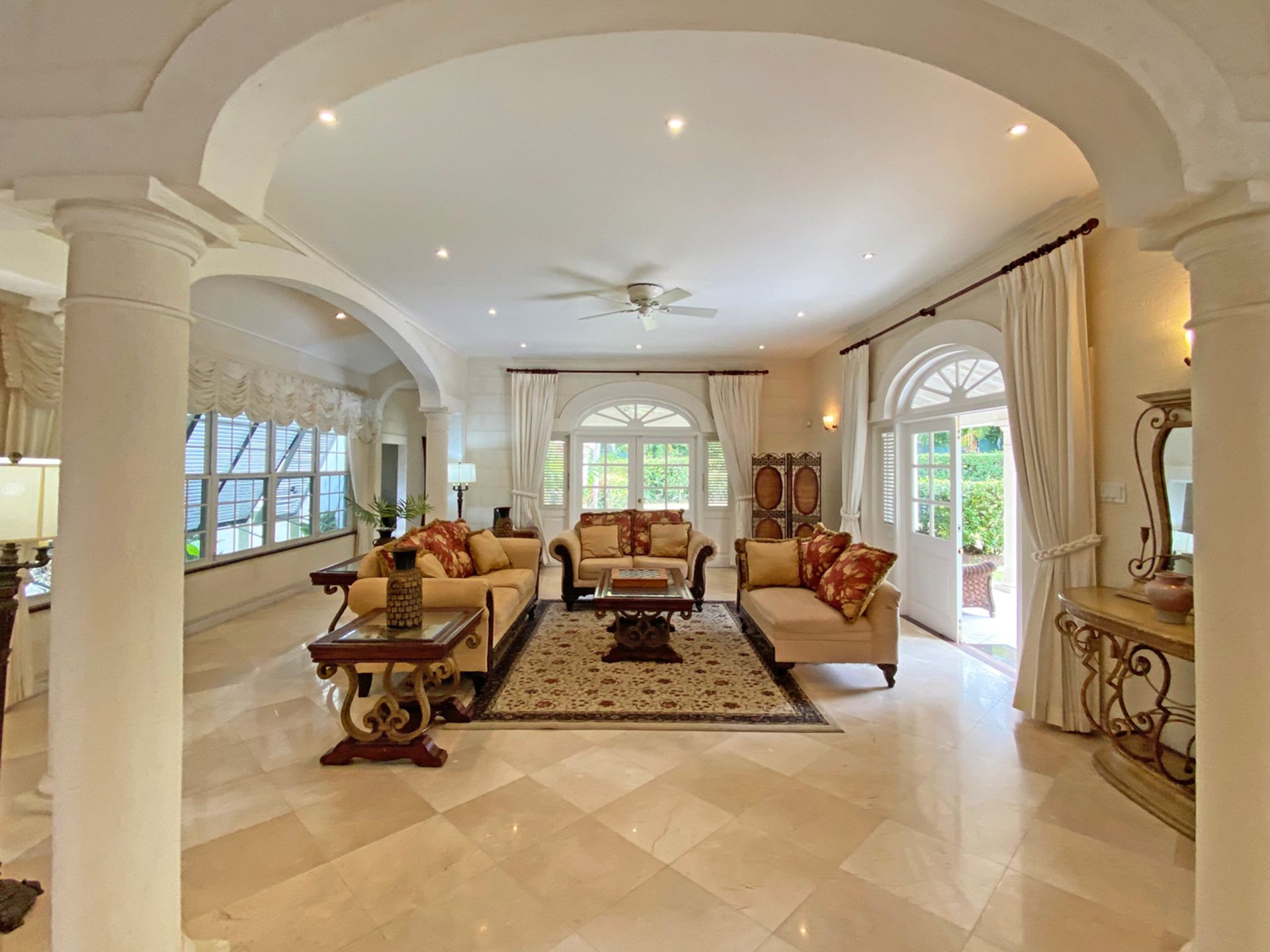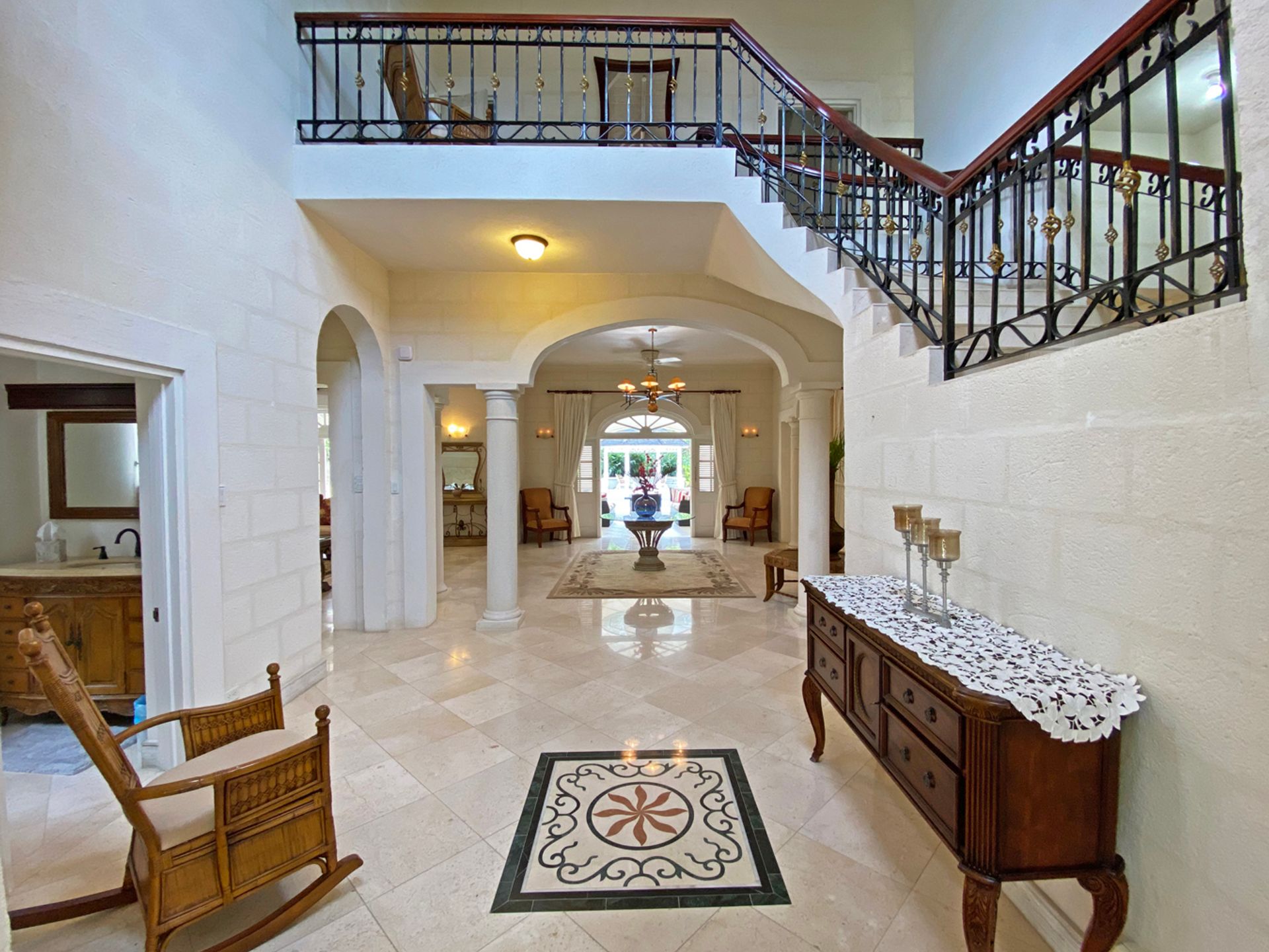 Magnolia, tropical landscaped gardens on the Sandy Lane Golf Course Barbados. The grand foyer leads to the large living and formal dining areas. This classic home boast high ceilings with decorative trim and opens through French doors onto a large covered patio, pool, jacuzzi and views of the Sandy Lane fairway. Two ensuite bedrooms on the ground level, and three en suite bedrooms are upstairs. Complete with access to the Sandy Lane home owner's Beach Facility. This home is beautiful with high quality finishes and fittings throughout. The kitchen is large with granite counter tops and pickled cabinets.
