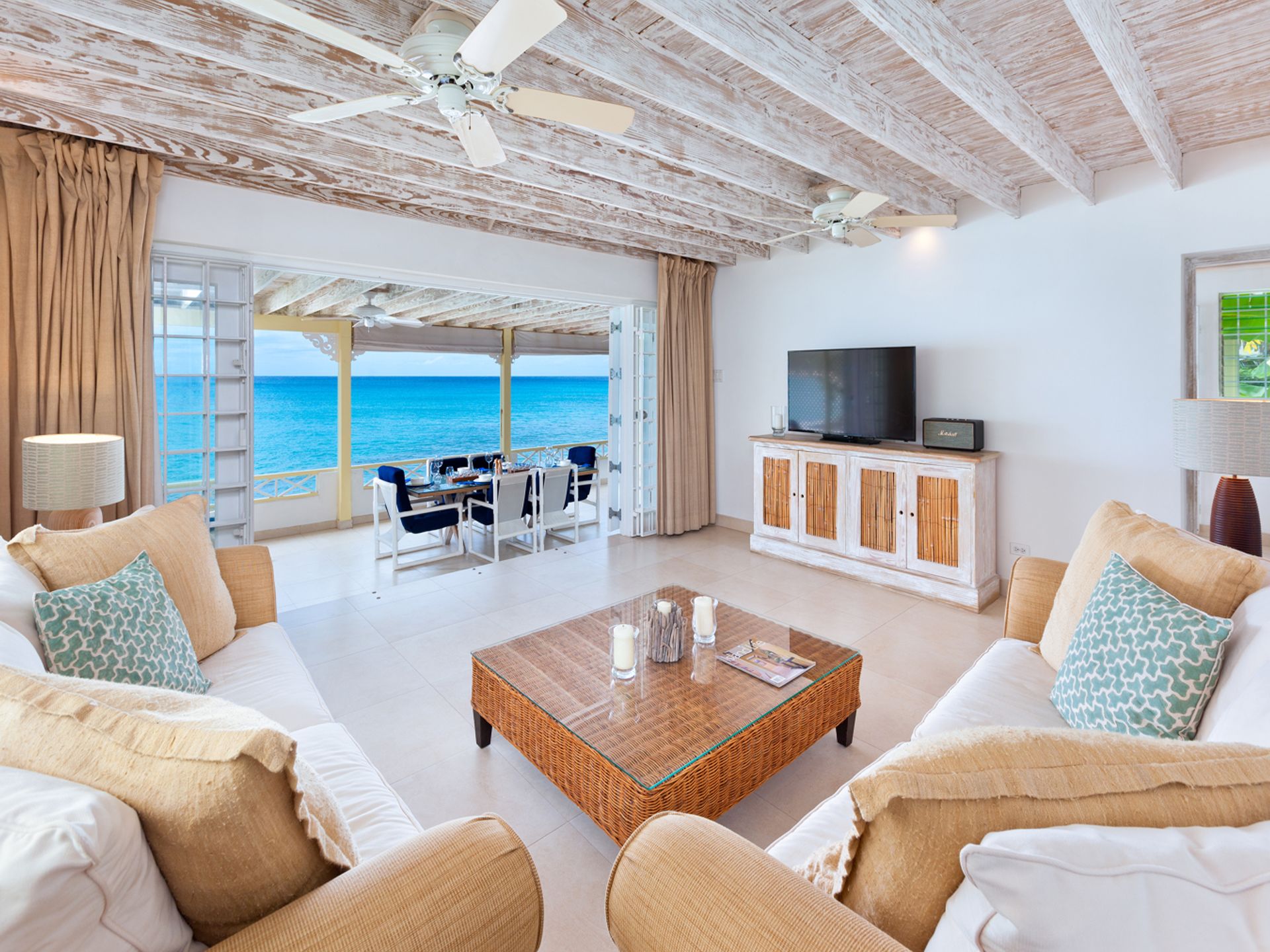 A beautiful oceanfront cottage located just north of Mullins Beach in St. Peter. Two en suite bedrooms on the ground floor and a lovely master suite on the first floor that features striking dormer ceilings, a shower room and a private balcony with fantastic views of the ocean, beach and Mullins Bay. On the ground floor a well-equipped kitchen and a living room that opens to a covered ocean side dining terrace and uncovered deck with stunning sea views. Easy Reach was totally refurbished in January 2009 and has a large sun deck right on the water's edge. A sea wall in front of the property leads to Mullins Beach just a few steps from Easy Reach. Easy Reach is offered for sale separately, or could be purchased together with Sunset Reach, it's neighbouring 3 bedroom cottage which is listed at US$2.25M.