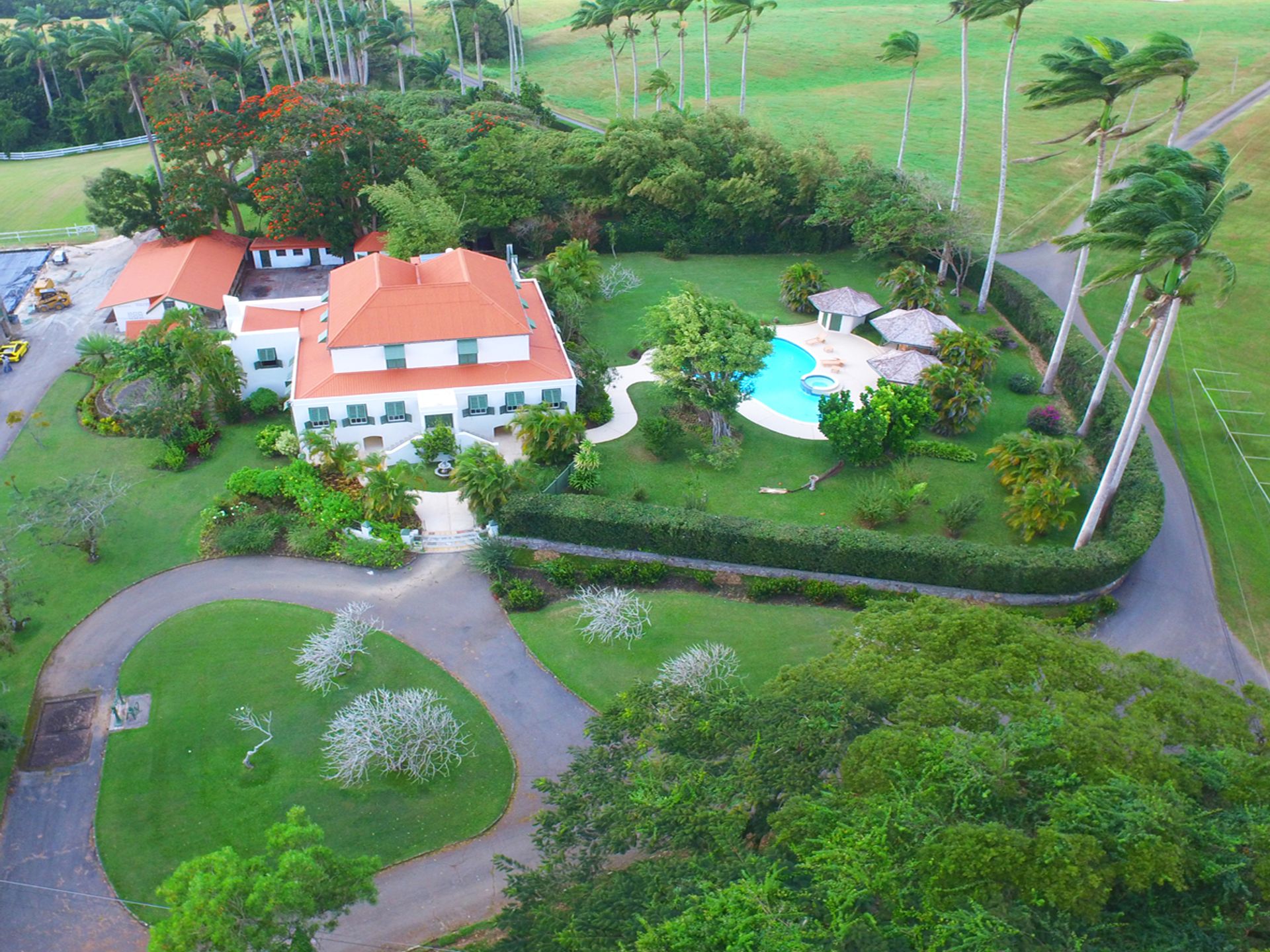 This historic traditional plantation house is set on 2.419 acres of land in the parish of St. Thomas offering spectacular views of the South Coast of the island. Originally built in 1721, the house is made of coral stone and has a 2-car garage and a swimming pool with gazebo. The floor area of the house is approximately 7,800 sq. ft., and consists of the basement level, and 4 bedrooms, 4 bathrooms, the living and dining rooms, the kitchen, bar, laundry and large storage area on the ground and first floors. The Plantation House is offered for sale separate from the adjoining 140 acres of agricultural land, apartment, old Managers House (the two properties can be purchased together as well). The grounds of this Plantation home are beautifully up-kept and an impressive driveway of Royal Palms leads to the property.